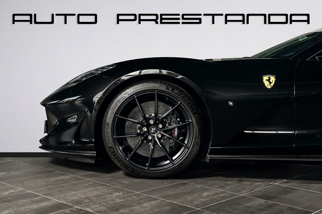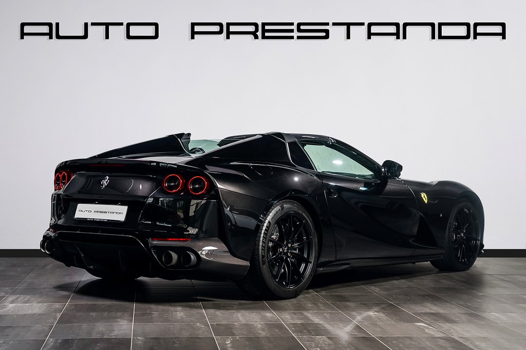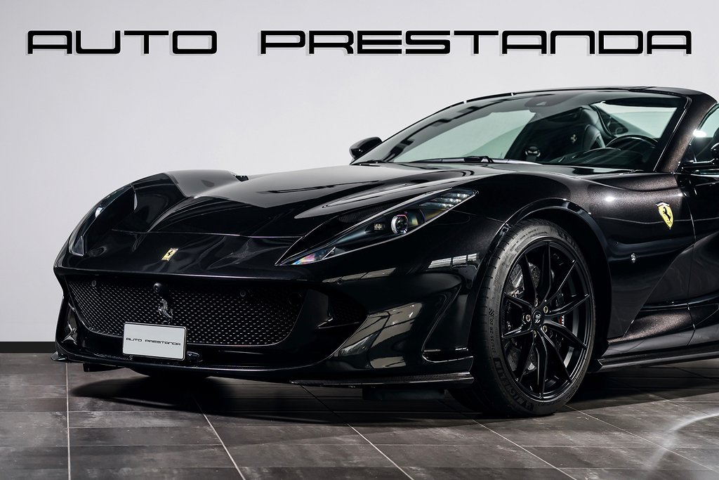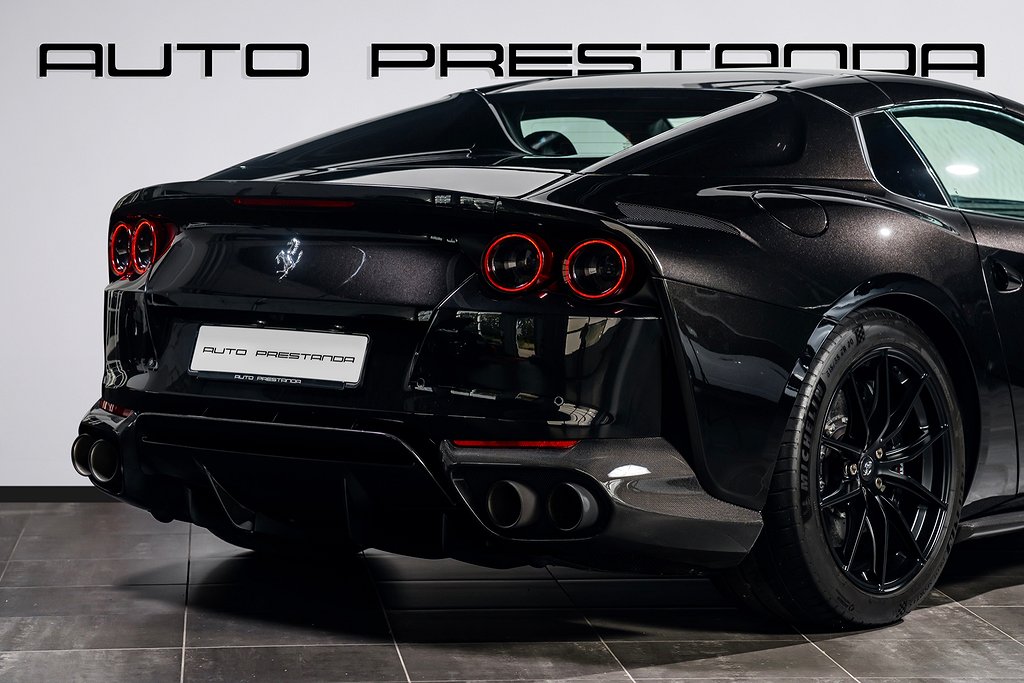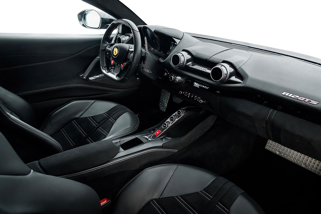 Svensksåld Ferrari 812 GTS -2022 med förlängd Ferrari Appproved Garanti tom 2027-06-30 samt Fri Service tom 2029-06-30, Bilen är helt PPF-Skyddad samt nyservad 2025-08-26 vid 8557 km, Scuderia Ferrari Shields on Fenders, LED-Shift Indicators on Steering Wheel, Embroidered Cavallino Emblem on Headrest Grigio Chiaro, Overmats with Embroidered Vehicle Logo, Upper Part of Passenger Compartment trim in Alcantara Nera, Bilen är i Absolut Toppskick och finns hemma i lager för omgående leverans
