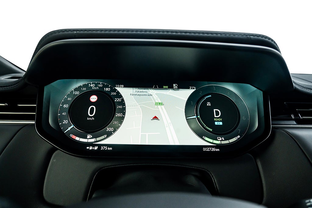 PHEV Electric BatteryKlimaautomatikVoice ControlDAB Digital RadioWi-FiTrådlös Laddning telefonAdaptive DynamicsEluppvärmda YtterspeglarElinfällbara YtterspeglarEbony InnertakLäderratt med Moonlight BezelDynamic ExteriorElmanövrerad RattBright Metal PedalsDäcktryckskontrollHeljusassistentPixel LED with Signature DRLKeyless Entry and GoSatin Chrome VäxlingspaddlarTrafikskylts-AvläsareAdaptiv AvståndsfarthållareBlind Spot AssistPark assistConnected Navigation PROTerrain Response 2FyrhjulsdriftEuro 6Steering Assist